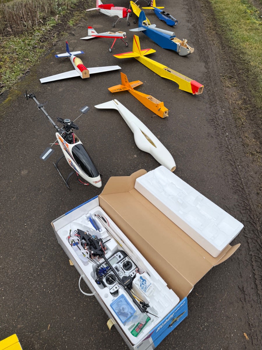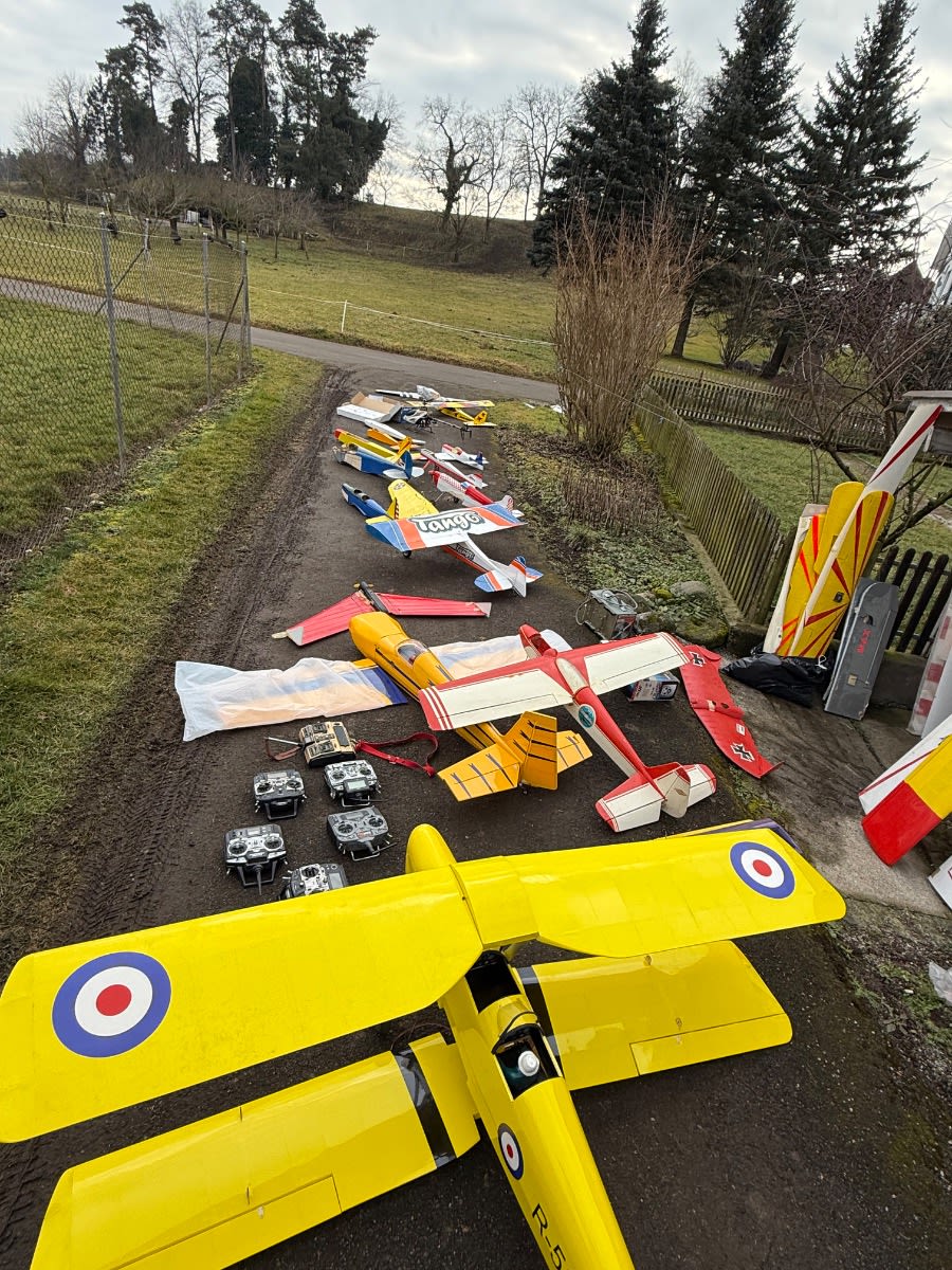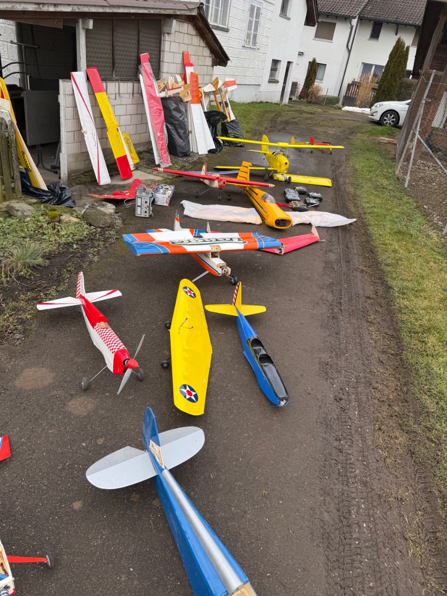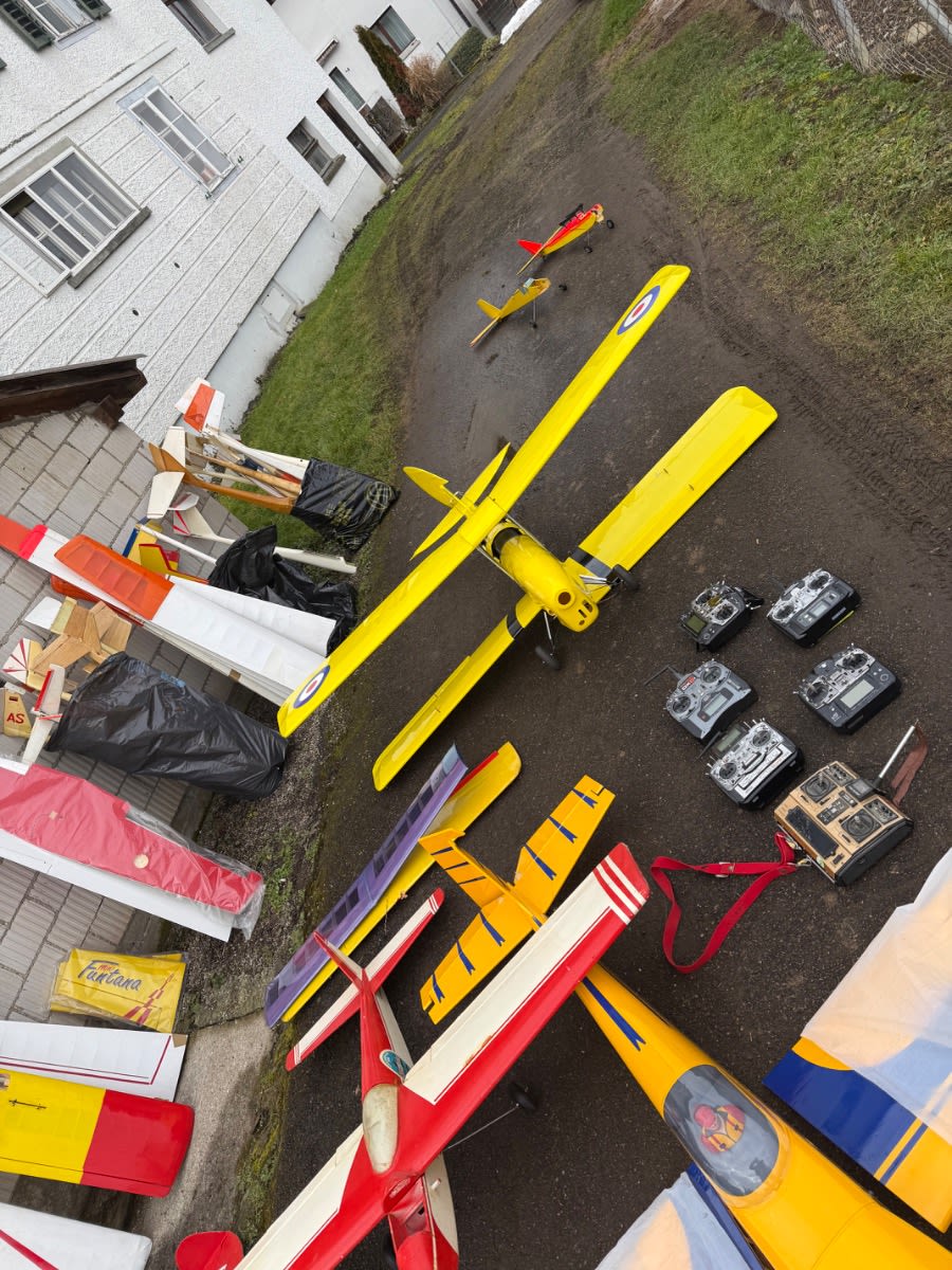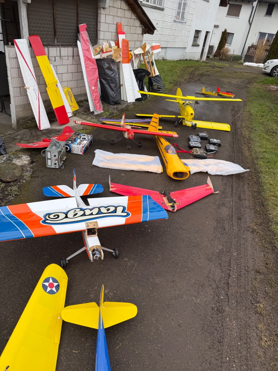 Ich verkaufe eine umfangreiche Sammlung aus dem Modellflug-Bereich, ideal für Bastler, Sammler oder Modellbau-Enthusiasten. Der Verkauf erfolgt komplett als Konvolut im Rahmen einer Ricardo-Auktion. ✈️ Inhalt der Auktion (gemäss Fotos): • Ca. 10 Modellflugzeuge (verschiedene Grössen & Typen) • Mehrere Segelflugzeuge • 1 grosser Helikopter TREx 600CF • 1 kleiner Helikopter (verpackt) Blade 400 3D • Ca. 7 ältere Sender / Fernsteuerungen • Viele Elektromotoren (gross & klein, diverse Typen) • Zahlreiche Ersatzteile & Zubehör • Akkus (ältere Baujahre, Zustand unbekannt) • Diverse mechanische & elektronische Komponenten ℹ️ Zustand: • Gebraucht • Teilweise älter, Zustand und Funktion nicht geprüft • Einige Modelle sind unvollständig oder reparaturbedürftig • Ideal als Ersatzteilspender oder Restaurationsobjekte ???? Verkauf & Hinweise: • Verkauf wie auf den Fotos ersichtlich • Keine Einzelabgabe • Keine Garantie oder Rücknahme • Abholung bevorzugt (aufgrund Grösse & Menge), Versand nach Absprache möglich ???? Für wen geeignet? ✔ Modellbauer ✔ Sammler ✔ Bastler ✔ Vereine / Werkstätten ✔ Ersatzteiljäger