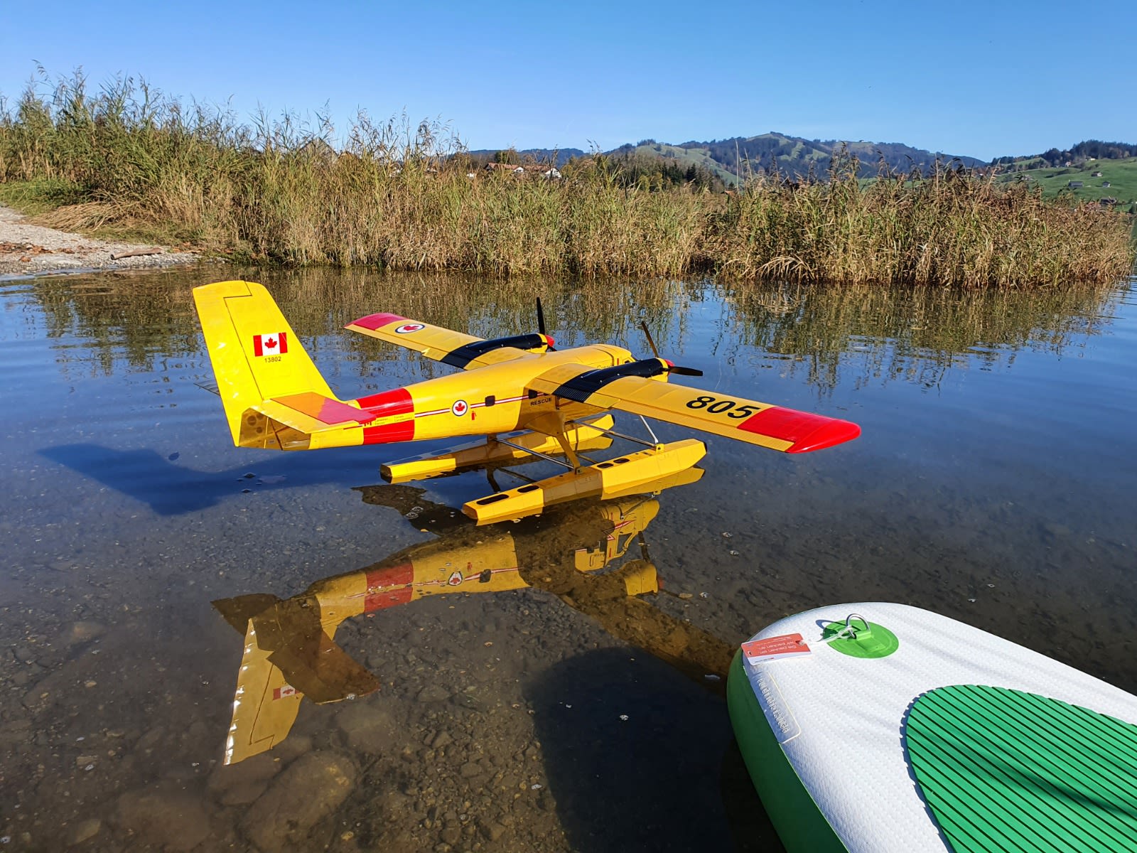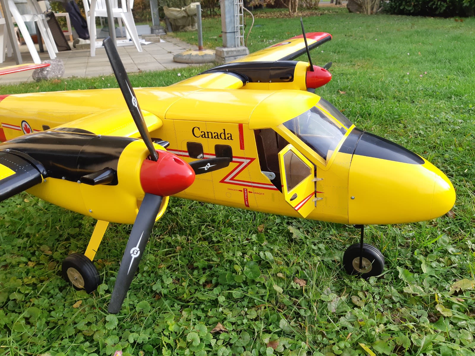 Sehr schönes HolzkonstruktionTwin Otter mit Räder und Schwimmer. Alles komplett ohne Empfänger und Akku. Ich fliege es mit 2x 3S 2200mA.Gewicht ca. 3.400g Spannweite 1.8m sehr stabil und gutmütig. Ich habe den Buck Rad geändert mit einem gefedertes Buck Rad.(siehe Hauptbild) Es war nur 1x auf dem Wasser.Garantiert Crash frei!. Inkl. eingebaut: 2x Motor Leo 2820-0880 V3 Dualsky XM 3542 E-A3-11 2x Blattspinner für 3 Blätter Propeller 4x KST Servos DS 315 MG HV 4.8Kg. 2x Futaba Servos SU-400 7.9Kg SBus fähig